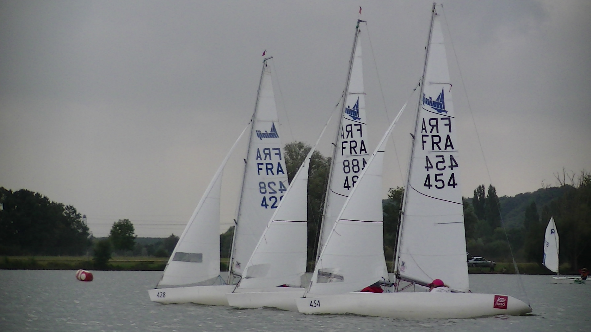 Avec quinze coureurs, la régate s’annonçait des plus intéressantes et se disputa au cours de cinq manches. Le vent timide se renforça un peu engendrant pour tous les participants une adaptation tactique de tous les instants. A ce jeu là, Eric DRYE (142) se montra immédiatement le plus performant ne laissant aucune chance à Christian POLLET (141), Daniel CARTEREAU (096) et Mathieu CARPIER (519), qui bataillaient au long des trois premières manches pour occuper les marches du podium.
