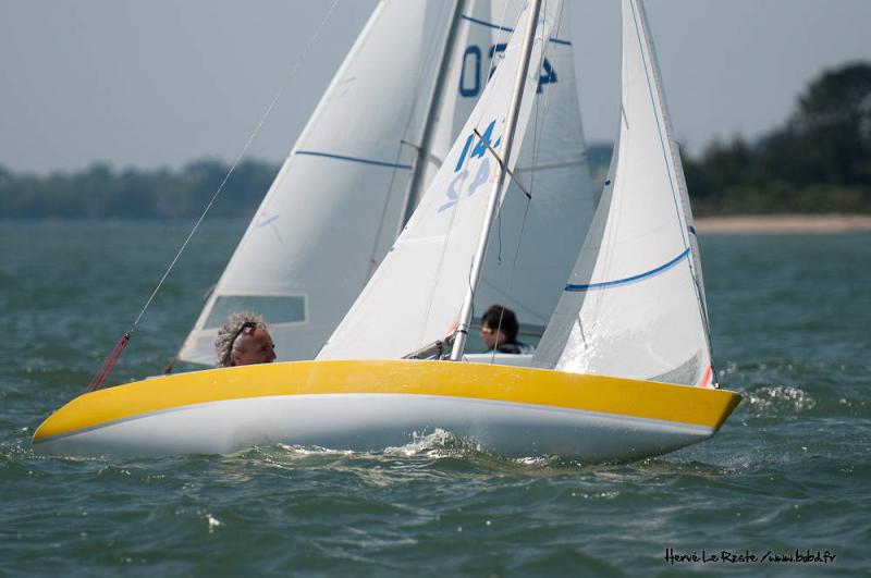 « Ce week end, c’était la Transgolfe, toujours parfaitement organisée par Hervé Tourneux et son club le SRV. 32 bateaux inscrits, une belle régate qui attire, il faut dire que le cadre idyllique. Samedi, les conditions étaient difficiles avec un vent qui variait en intensité avec de bonnes claques dans les grains. Marc Vimont , pas très en forme préférait rester à terre. Le courant ayant tendance à monter les bateaux sur la ligne, les départs étaient chauds voir bouillants. On partira deux fois sous drapeau noir et Daniel Cartereau se fera prendre……Aucune manche n’étant retirée, il pénalisait ses chances de résultat malgré une place de 8. Didier Brunet qui découvrait son nouveau jeu de voiles fait 9 et 12. Quant à moi, je gagne les 2 manches. Soirée bien agréable, avec apéro agrémenté de contes sur la région. Dimanche les conditions ont bien changé et c’est dans un tout petit temps que nous allons régater. On fera 3 manches avec un vent qui basculera de 180° Pas simple à gérer…Le courant qui incite à aller à droite et le vent à gauche. Marc fait de belles manches et remonte à la 23ème place, Didier rentre dans ses objectifs en terminant 15 et Daniel sauve les meubles et finit 9. Nos amis du Club de Voile de Marçon Yannick Lebras termine 6, Pascal Dieu 16, Clément Lebras 17 et Noël Douet 26. Quant à nos amis Nantais du SNO, Mathieu Carpier termine 5 et deuxième handi, Caroline Martin confirme sa progression et finit 18 avec une belle place de 15 dans la quatrième manche. L’ami Manu , pas très en forme prend la vingtième place. Bernard Destrube prend la deuxième place. Quant à moi je gagne la Transgolfe ».