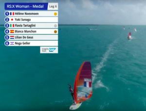 C’est donc à la 4ème place qu’Hélène a attaqué la medal race. Après un départ assuré (6ème place), elle est progressivement remontée sur ses adversaires pour finalement remporter cette dernière manche. Ses adversaires directes pour le podium finissant respectivement à la 3ème, 4ème et 10ème place, Hélène remporte cette première étape de Coupe du monde 2018 !