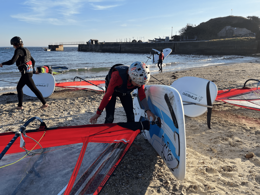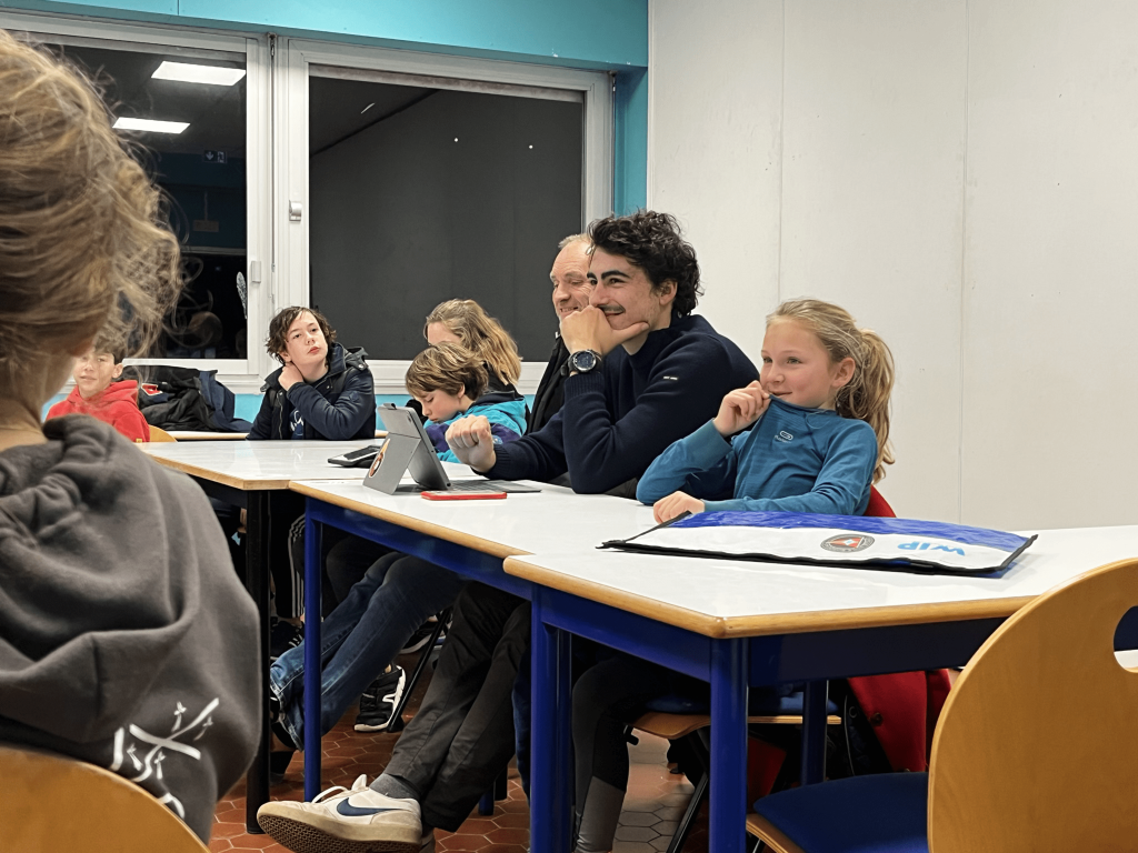 La semaine dernière avait lieu le stage régional à l’Ecole Nationale de Voile et des Sports Nautiques à Quiberon. 85 coureurs étaient rassemblés à l’occasion. Au programme : réveil sportif, atelier de gestion du stress, règles de course, initiation à la météorologie et cours théorique avant d’aller naviguer l’après-midi. Le soir, tout le monde se retrouve en salle pour débriefer de la journée avec ses coachs, faire une séance d’étirement et finir la journée sur un temps plus calme.